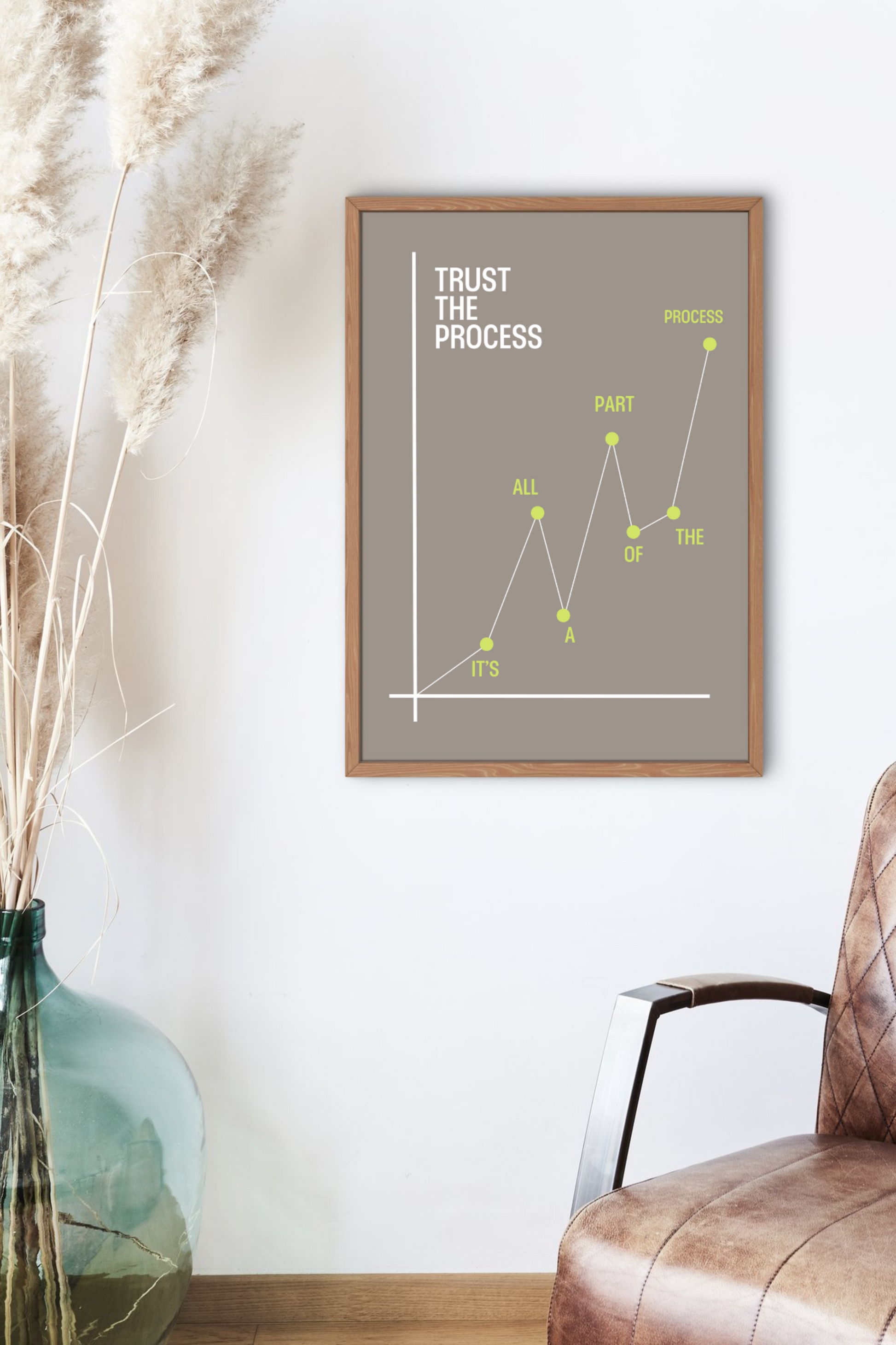 Life’s journey isn’t a straight line—it’s a mix of highs, lows, and lessons that lead to growth. This simple yet powerful graph illustrates that every rise and fall is part of the process. Let this piece be a calming reminder on your wall: trust the journey, and know that every setback is a step toward success.